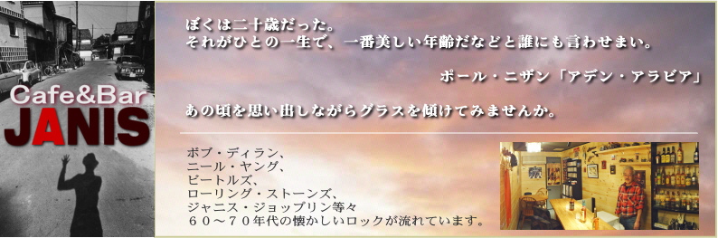 今日はサプライズがありました。小生が学生の頃、毎日の様に通っていた新宿の飲み屋で働いていた女の子が突然、ジャニスに来られました。ひょんなことから小生が阿佐ヶ谷で店を始めたことを知ったとのこと。40年振りの再会です。昔話に花をさかせ、タイムスリップしていまいました。ちなみみに彼女も高円寺でお店をやっているとのことなので是非、訪ねてみたいと思っています。 |